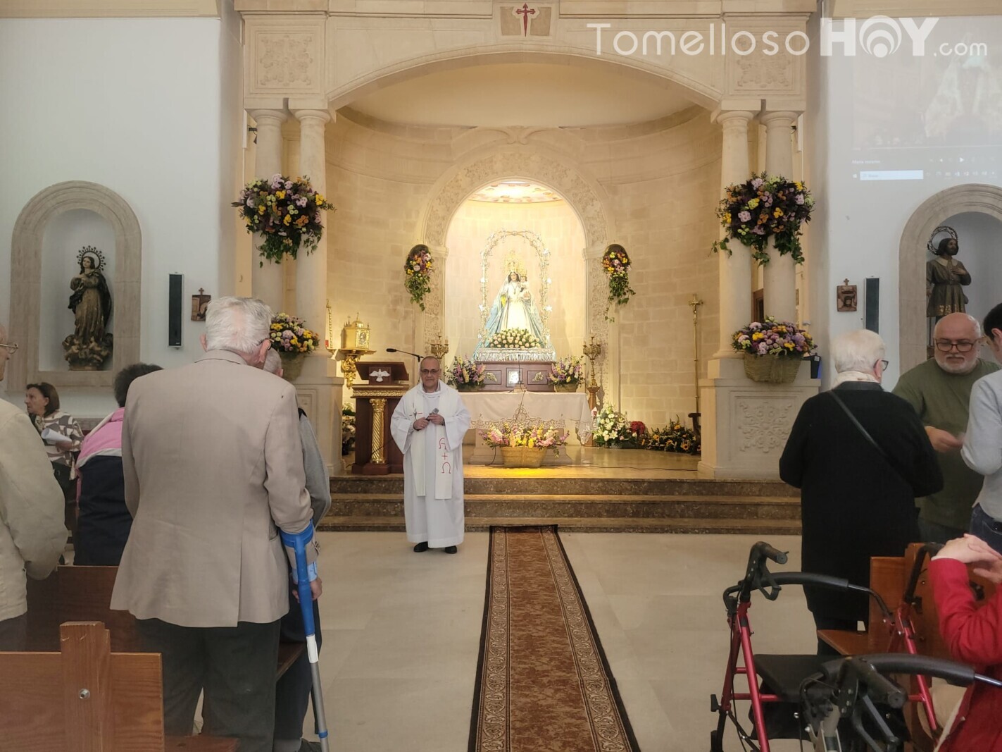 La homilía ha sido presidida por José Carlos Redondo, párroco de la Parroquia La Sagrada Familia, y ha contado con la presencia del presidente de la Hermandad, Alejandro Ramírez, así como de residentes de Fundación Elder y de la residencia Don Víctor, que han querido acompañar este significativo momento de la Romería de Tomelloso. También han estado presentes la concejala de Cultura, Inés Losa y el pregonero, Bernabé Blanco. El acto ha concluido con los asistentes entonando el Himno en honor a la Virgen de las Viñas.